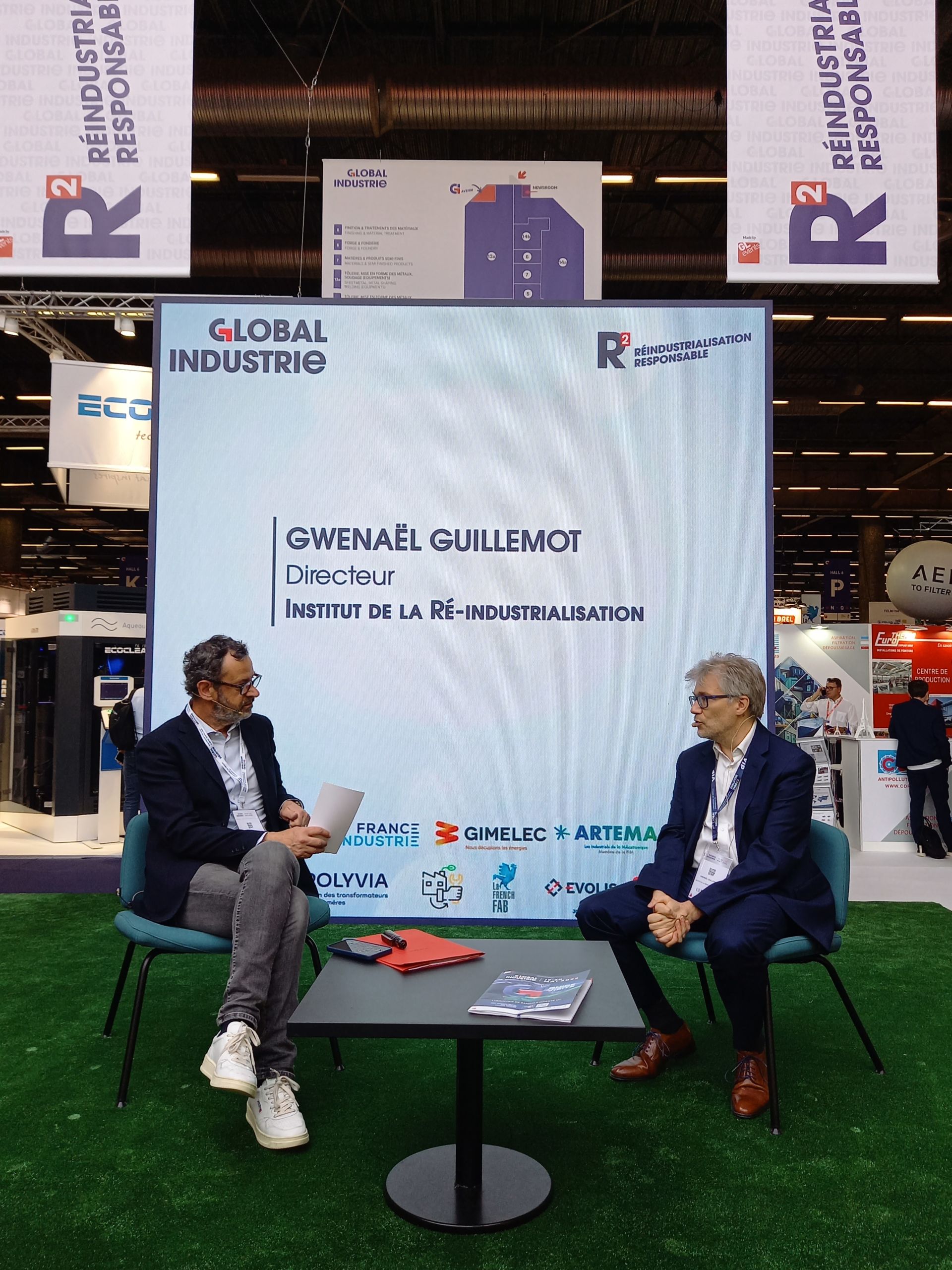 Directeur de l’Institut de la réindustrialisation et responsable du département industrie à CESI Nanterre, Gwénaël Guillemot a répondu aux questions de Stéphane Courgeon, journaliste, sur la thématique du renouveau de l’industrie française lors du salon Global industrie qui s’est déroulé du 17 au 20 mai 2022 au Parc des expositions de Villepinte.